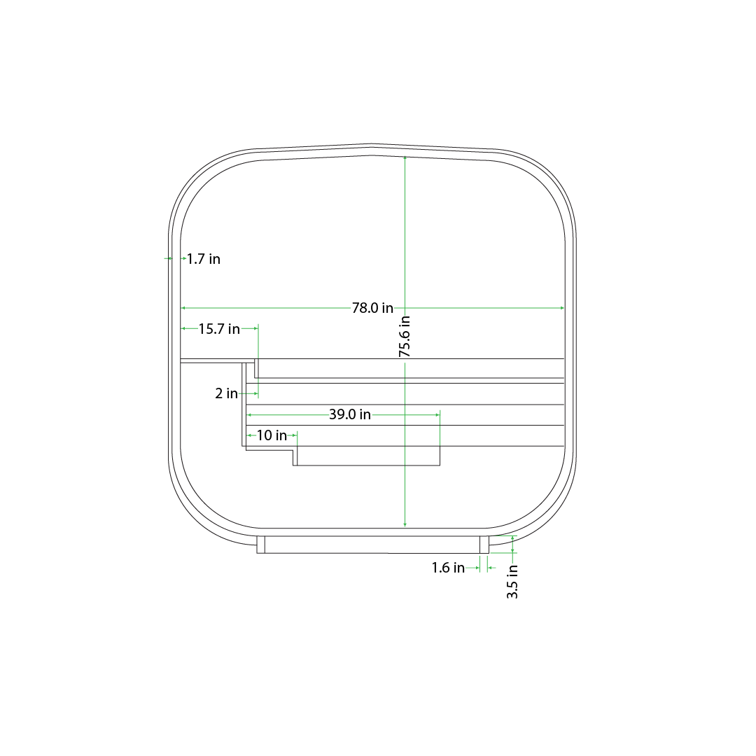 - Interior Sauna Space: 37.4 in (length) × 75.6 in (height)